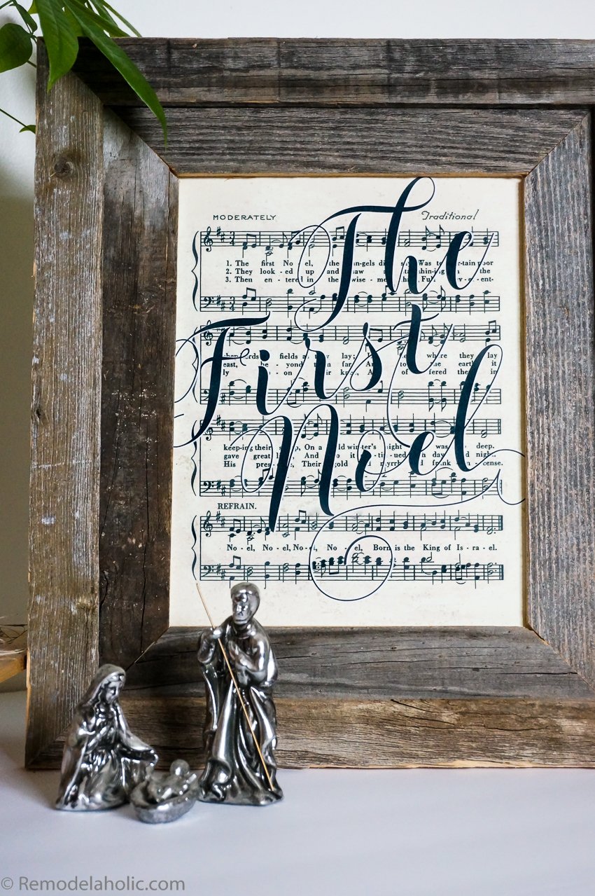 No matter whether your style is more modern, more vintage, or more eclectic, the neutral black and white on aged paper makes these printables the perfect backdrop for a nativity or for layering on a mantel or shelf with other pieces. Put them in a colorful red frame for a more modern pop of color, or a rustic wood frame like this for a farmhouse Christmas style.